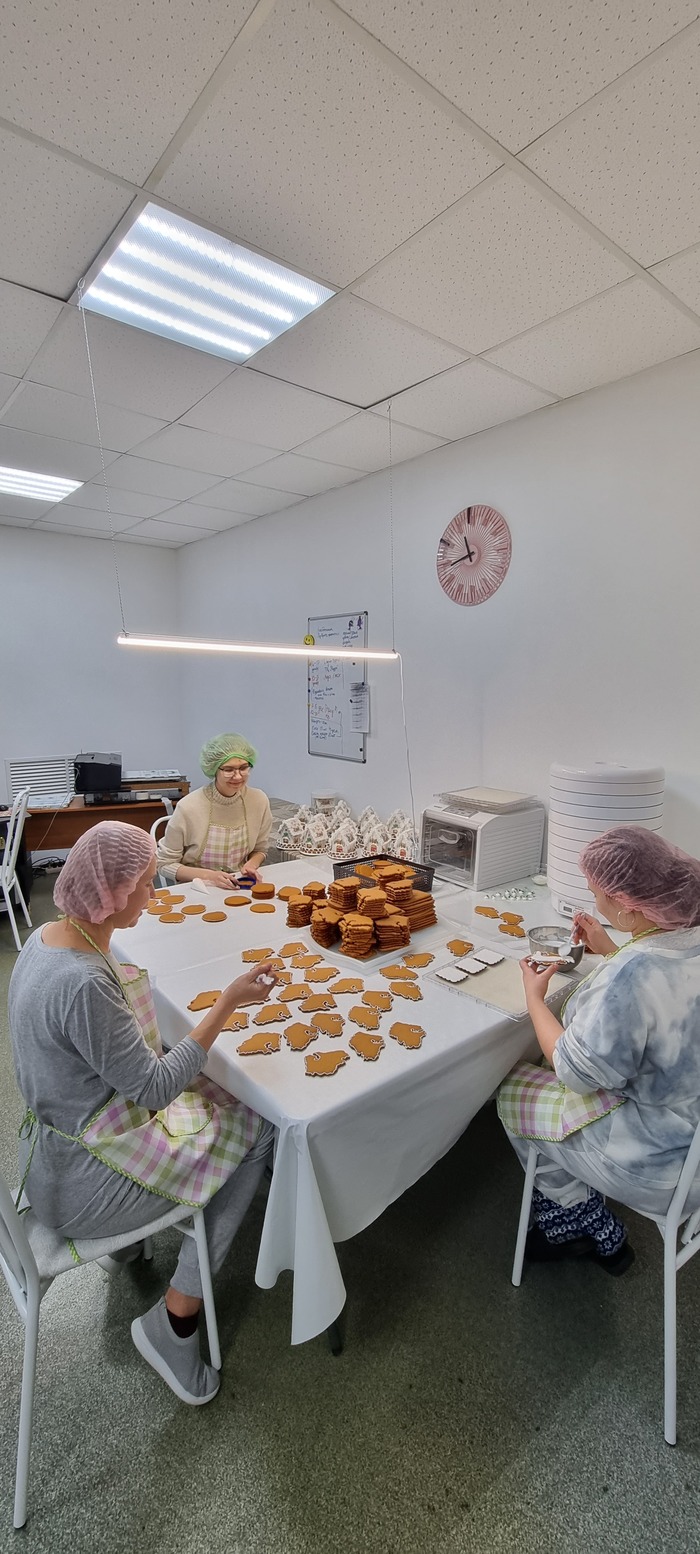 Конечно, кто-то не любит ездить на мероприятия и работать лицом мастерской. Кто-то не любит замешивать тесто, кому-то не по душе печать на пряниках. У каждого есть нелюбимые дела, но незаменимых внутри коллектива нет. Делим работу по принципу хочешь - не хочешь. Бывает, что просто надо и это тоже всем понятно. Прекрасная команда собралась. Время тётушек с высокими прическами в мастерской прошло безвозвратно и слава Богу.