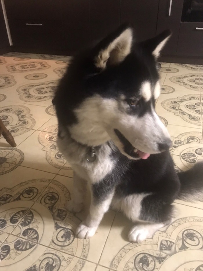 Найдена собака породы хаски, девочка с гетерохромией, по виду месяцев 5-6 от роду.Прибилась на въезде в посёлок Зубово, Уфа, есть ошейник, на нем данных никаких нет.