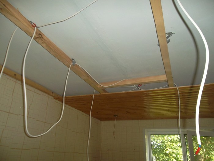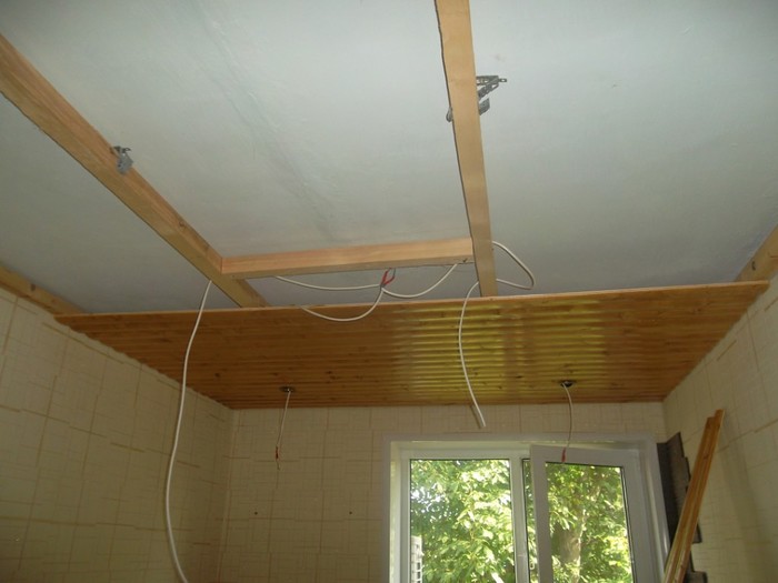В общем у нас в доме проблема с плитами перекрытия, они уложены не ровно. В зале сделал натяжной потолок ( мне не понравилось), в детской решил делать из Блок-хауса. Далее фото, думаю и так понятно все.