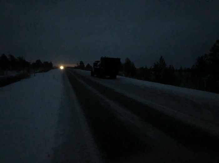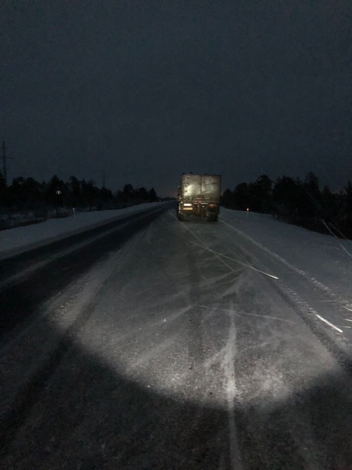 В общем. На дороге, по полосе движения стоял УРАЛ, без ничего. Нет, не так. БЕЗ НИХУЯ. Ни аварийки, ни знаков, ни габаритов. Водителя и того не было. А чтобы вы понимали, в конце октября в тайге крайне рано начинается ночь. Все фото(ниже) сделаны в районе 17.00.