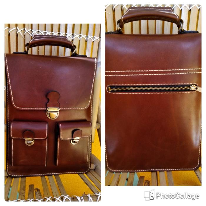 Сегодня закончен данный проект. Сумка изготовлена из высококачественной греческой кожи КРС, в сумке не использовался картон и прочии уплотнители КОЖА и только КОЖА. Подкладочная свиная кожа толщина 0,5мм., молнии YKK, качественные замки. Уникальная регулировка плечевого ремня. Ширина 220мм Высота 300 мм Толщина (от передней до задней стенки) 50 мм. Один внутренний карман на молнии.