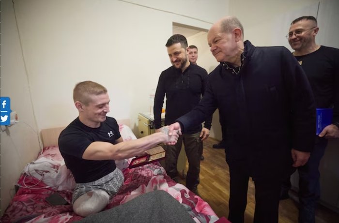 Ранее в понедельник Шольц впервые за последние два с половиной года прибыл с необъявленным визитом в Киев. Канцлер ФРГ в X написал, что сообщит Зеленскому о планах Берлина поставить в декабре Украине вооружений на €650 млн. Пакет включает в себя в том числе системы ПВО IRIS-T, танки Leopard-1, разведывательные и ударные беспилотники.