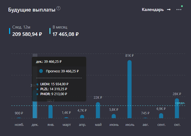 Тот, кто всегда кладет дивиденды под елку, надеюсь в этом году будет также. Получу чистыми 13 860 рублей.
