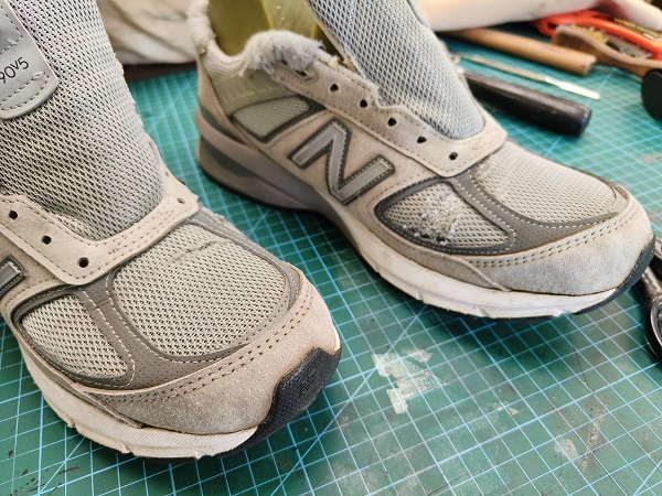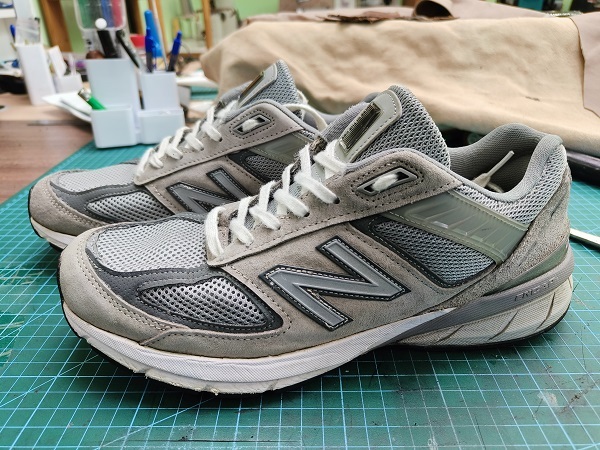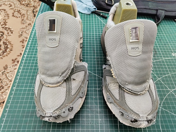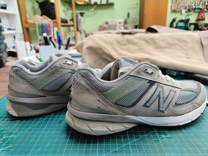 Перед новым годом Заказчик решил отремонтировать свои кроссовки. Правда, на них были не только следы эксплуатации, но и следы собачьей любви. Девятисотые модели NB нам знакомы и процесс пошел быстро.