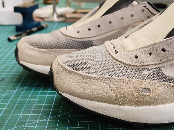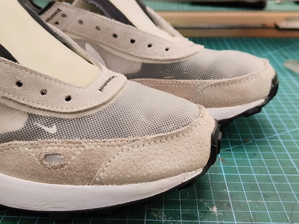 Продолжая тему о "расчлененке и обнаженке" покажу одно решение по кроссовкам, которые случайным образом был порваны в необычном месте.