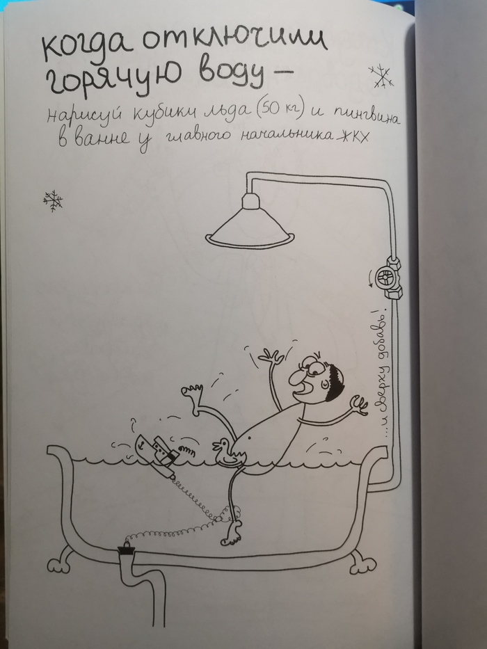 В её центре стояла бронзовая сковорода, при первом взгляде на которую становилось ясно, что вещь эта невероятно древняя. На стене над ней висел такой же древний бронзовый термометр, принцип действия которого был непонятен — у него внутри зеленела какая-то спираль, а на циферблате была только одна отметка. На другой стене висела инструкция под названием «к сведению акционера», нагло пренебрегавшая правилами русского языка (даже буквы «ц» в слове «акционер» не было, а вместо неё стояла какая-то восточноевропейская «с» с галочкой).