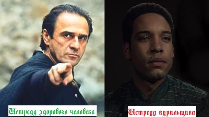1. Истредда сыграл очередной "афрополяк", хотя внешность его по книге была явно не южная: "Истредд выглядел не старше верных сорока. У него были слегка седеющие, прямые, доходящие до плеч волосы и многочисленные, придающие серьёзность морщинки на лбу, около рта и в уголках глаз"