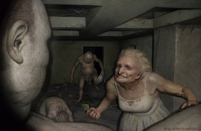 Голову поднимаю,... а двери нет. Смотрю, стена сплошная, квартирные двери, а подъездной нет...