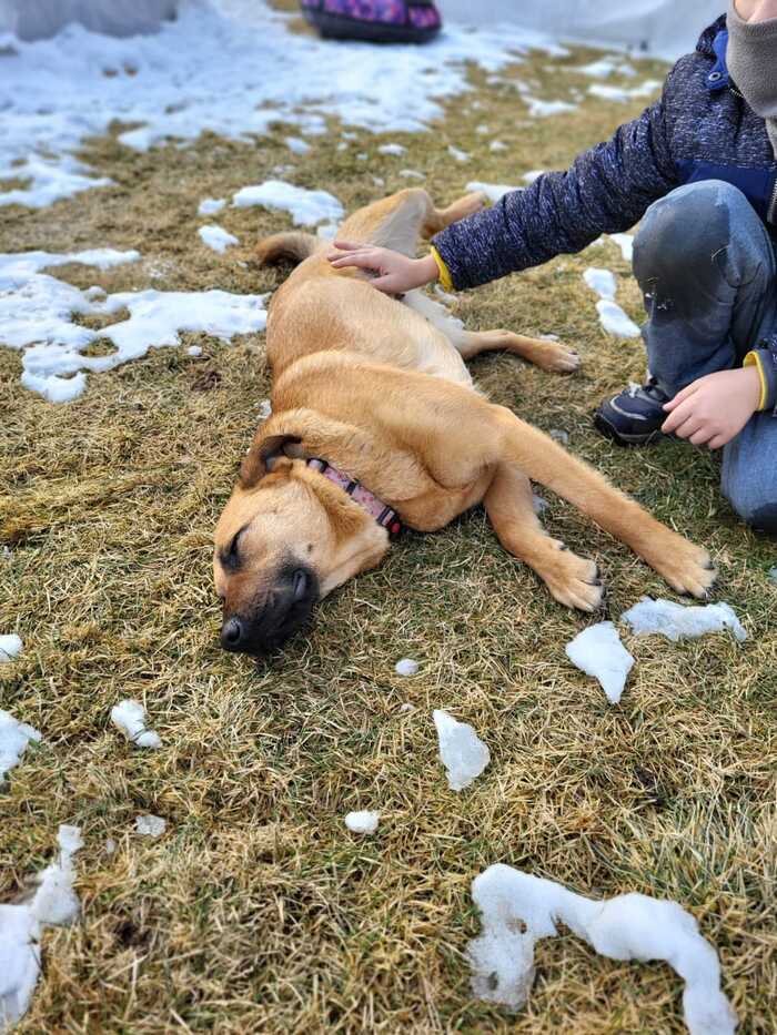 Афина очень добрая собака . Полностью ориентирована на людей.