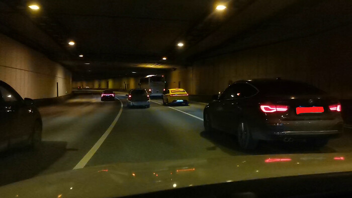 Я долго думал, на что снимать, и в конце концов решил, что самое оптимальное - это не видеорегистратор, а смартфон. Например, подержанный "Huawei Honor 20 Pro" можно купить на авито за 6-8 тысяч рублей. Это телефон c весьма приличной камерой, снимает с частотой 60 кадров в секунду. Ночью и в тоннелях автоматическая настройка скорее всего выставит вам параметры съёмки так, что номер машины будет засвечен, а автофокус может подстроиться под грязь на стекле автомобиля. Поэтому очень важно, чтобы в телефоне была возможность ручной настройки без установки сторонних приложений. На упомянутом телефоне это делается в настройках камеры в режиме PRO. Выбираем MF (manual focus) и выставляем на бесконечность. С выдержкой и ISO вам скорее всего придётся поиграться. Смысл в том, что выдержка должна быть маленькая, чтобы не размывались движущиеся машины (я обычно ставлю S = 1/320 секунды). В последнюю очередь мы выставляем ISO, которое нужно подогнать по выбранную выдержку и освещение. При дневном свете ISO нужно выставить на минимум (у меня это 50), а ночью увеличить так, чтобы номера были видны, но не замыливались шумом (у меня от 1600 до 3200). При этом сами машины могут оказаться достаточно тёмными, но хорошая видимость номеров у нас в приоритете!