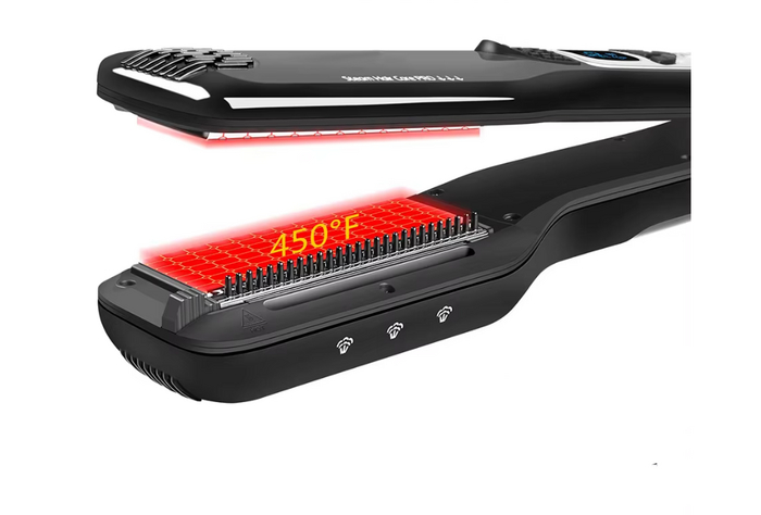Этот выпрямитель использует пар для бережного выпрямления волос, минимизируя повреждение и добавляя дополнительный уход и блеск волосам.