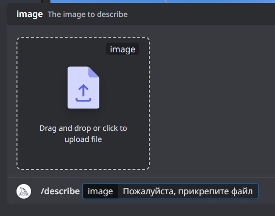 Как это работает: после ввода команды /describe появляется поле для загрузки картинки