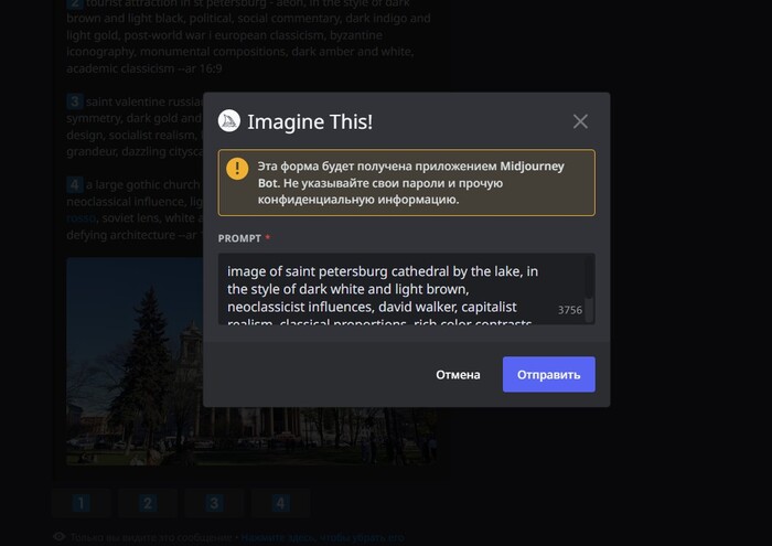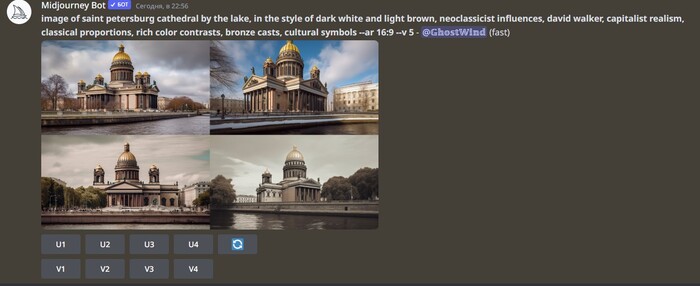 После отправки происходит генерация и появляется привычные 4 варианта картинок