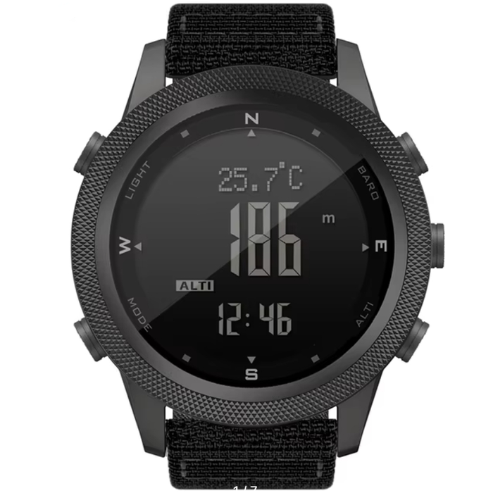 Часы, разработанные для экстремальных условий, со множеством полезных функций, включая компас, альтиметр, барометр, термометр и педометр. Водонепроницаемый корпус с нейлоновым ремешком гарантирует долговечность и надежность в сложных условиях.