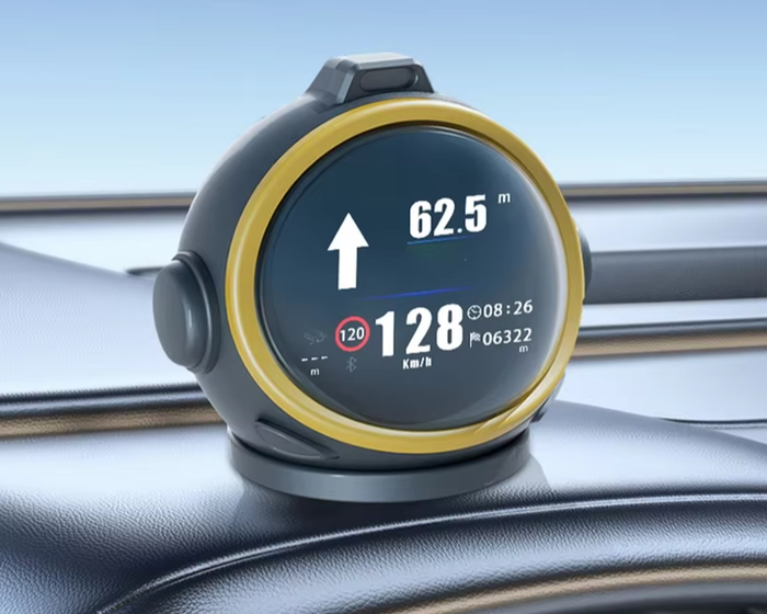 Современное устройство, которое отображает информацию об автомобиле, включая напряжение в сети, сколько топлива осталось и скорость. Робот моргает и осматривается, добавляя интерактивности в интерьер автомобиля.