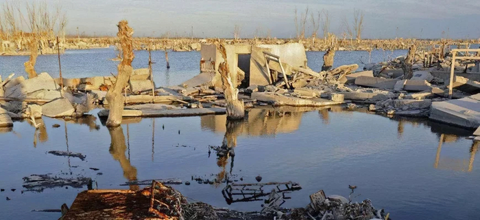 Аргентинский курорт Вилья-Эпикуэн 25 лет скрывался под водой, пришедшей в него в результате техногенной аварии, вызванной наводнением.