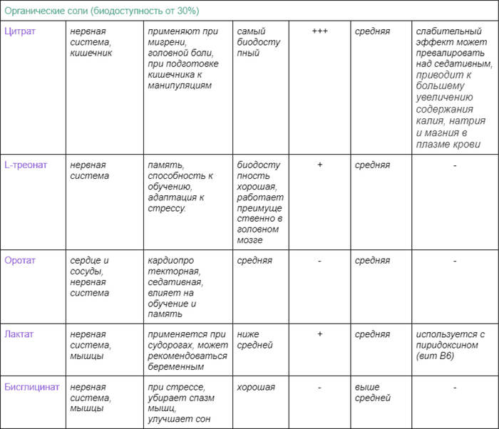 Таким образом, различные соли магния демонстрируют различное фармакологическое воздействие. По сравнению с неорганическими соединениями, цитрат магния более действенный, а бисглицинат – самый рабочий и биодоступный, без нежелательных эффектов со стороны ЖКТ. Поэтому почти всегда стоимость магния напрямую влияет на его качество и эффективность. А при соответствующей цене все равно нужно внимательно читать этикетку.