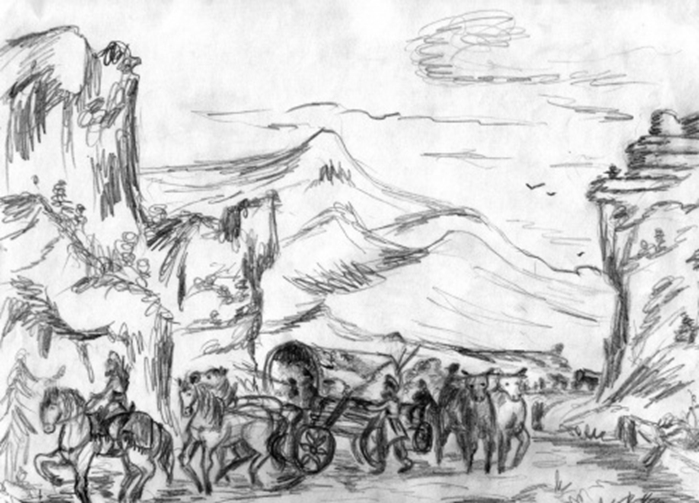 Женщины – тоже в штанах, но их тулупы длиннее, чем у мужчин. Многие из них все еще заплетают косы такие же, как там, на северной родине, и носят золотые диадемы. Но условия очень суровы. Люди все время в пути. Они ведут с собой овец, лошадей, быков. Едут повозки, скрипят колеса и полозья.