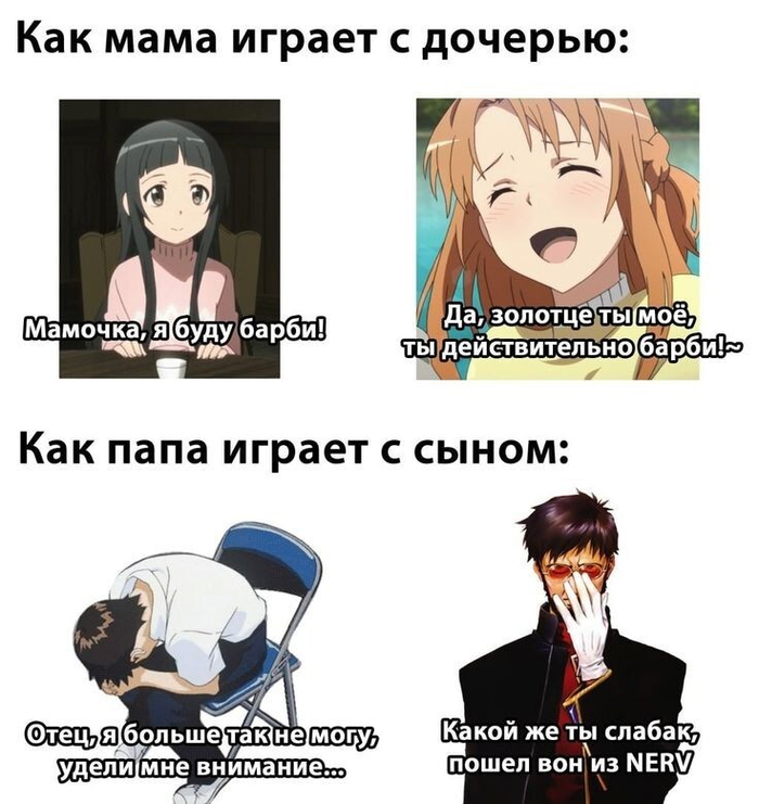 При этом Синдзи ему мешает, но понимает, какой его батя хлюпик (такой же как он), воссоединяет с мамой, а сам откатывает мир назад в состояние, когда евангелионов, АТ-полей, бога и прочей хуйни не существует и никогда не существовало. В конце получает сисятую вайфу, все живы, все счастливы, все смеются.