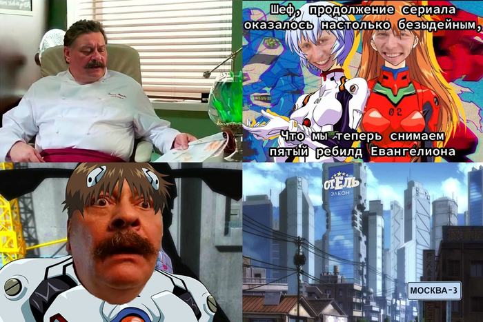 И вот у нас есть вот это вот все, как вдруг в 2007 году Анно выходит вперед и говорит: все хуйня, мы запустим новый Евангелион! Его так и назвали: Rebuild of Evangelion. Официально заявлялось что это будет пересказ Евы своими словами для тех, кто не в теме и не желает разбираться, но по факту Анно просто попустило - он женился, вышел из депрессии и понял, что нахуевертил. И решил хотя бы попытаться все поправить. Репрезентовал свою жену, сделав её одной из главных героинь и будущей вайфу Синдзи, тут подкрасил, там подправил, попытался сделать Синдзи менее нытиком, хоть все таки и нытиком, потому что если Синдзи не плачет, то это не он, выкинул НАХУЙ весь сюжет и написал его почти с нуля.