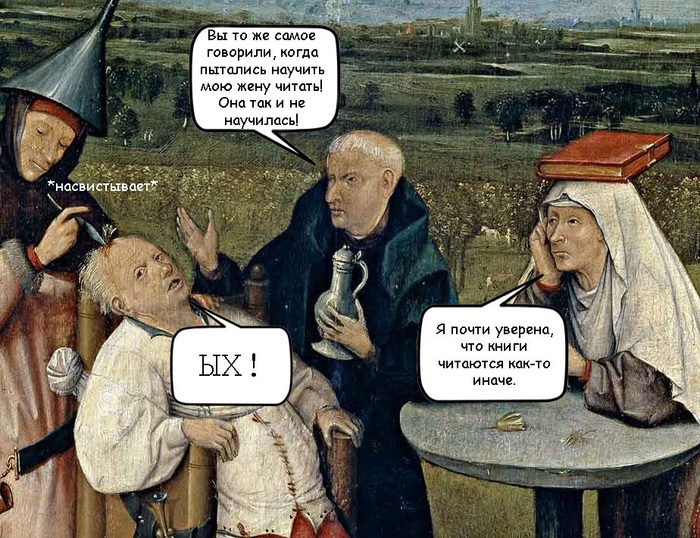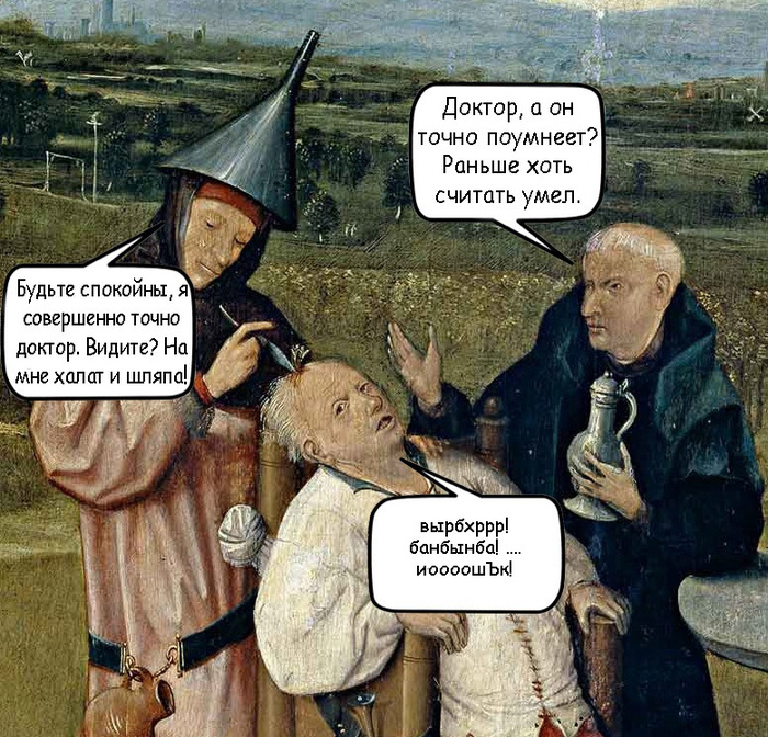 Одни чудища в очереди, прежде чем попасть к чудо-лекарю на осмотр, выходили на улицу в прикладывались к чудо-бутылке.
