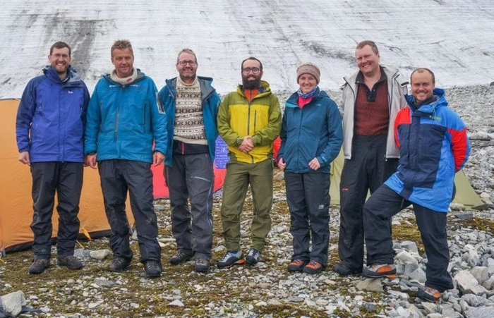 Команда исследователей на Лангфонне в 2016 году. Эйстейн (справа) держит в руках высокочастотный GPS