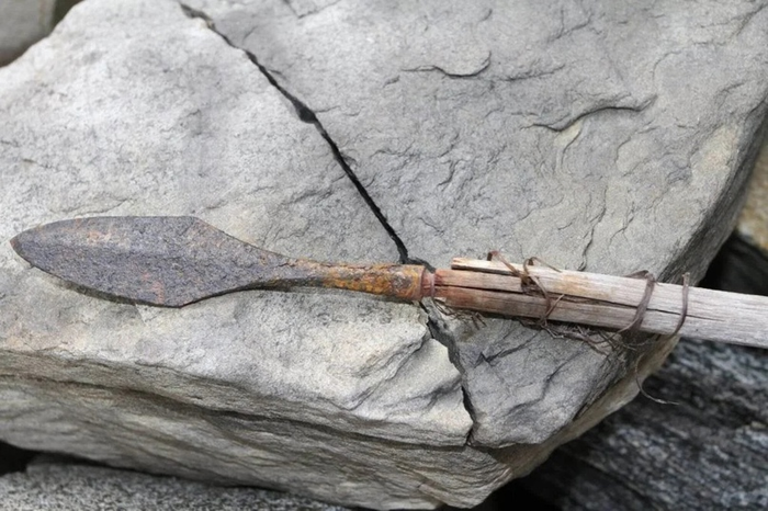 Стрела приблизительно 7 века н. э. была найдена на каменной осыпи у тающего ледника