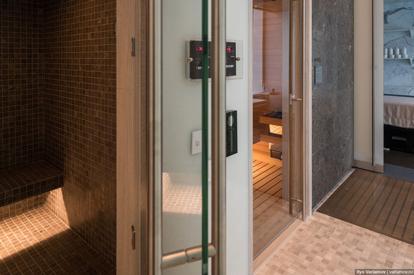 Кстати, в квартире есть газ. Да, на 71-м этаже! А в пентхаусах есть даже газовые камины. С точки зрения безопасности это ни у кого беспокойства не вызывает. А ещё в квартире есть мусоропровод, прямо как в московских сталинках! Когда-нибудь жильцы пентхаусов смогут на практике проверить, доберутся ли тараканы до 82-го этажа (если они вообще заведутся в доме).