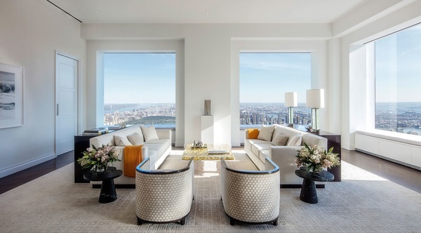 Это квартира площадью 375 кв. метров, которая занимает половину этажа. В ней 3 спальни, 4 с половиной ванных комнаты. Квартиру недавно сдали за $60 000 в месяц, она также выставлена на продажу за $33 750 000.