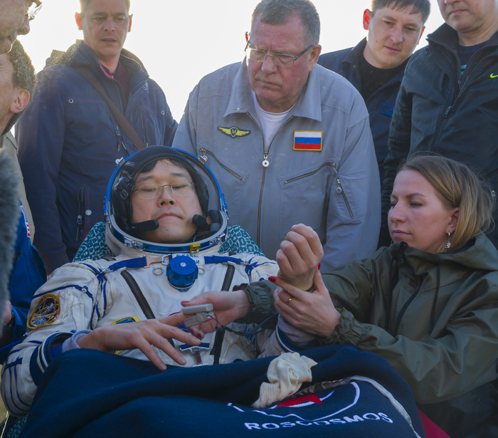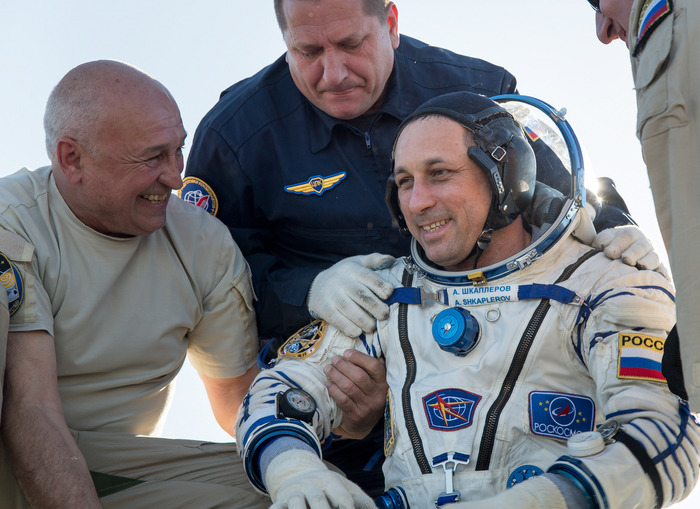 Сегодняшним июньским днем экипаж ТПК Союз МС-07 успешно приземлился в казахстанской степи. В 15:39 мск спускаемый аппарат коснулся земли, а спустя 20 минут все космонавты были извлечены из капсулы и осмотрены медиками. Антон Шкаплеров(Роскосмос), Скотт Тингл(NASA) и Норишиге Канаи(JAXA) пробыли на орбите 168 дней. Сами космонавты оценили свое состояние как "хорошее", хотя японскому астронавту возвращение далось тяжело.