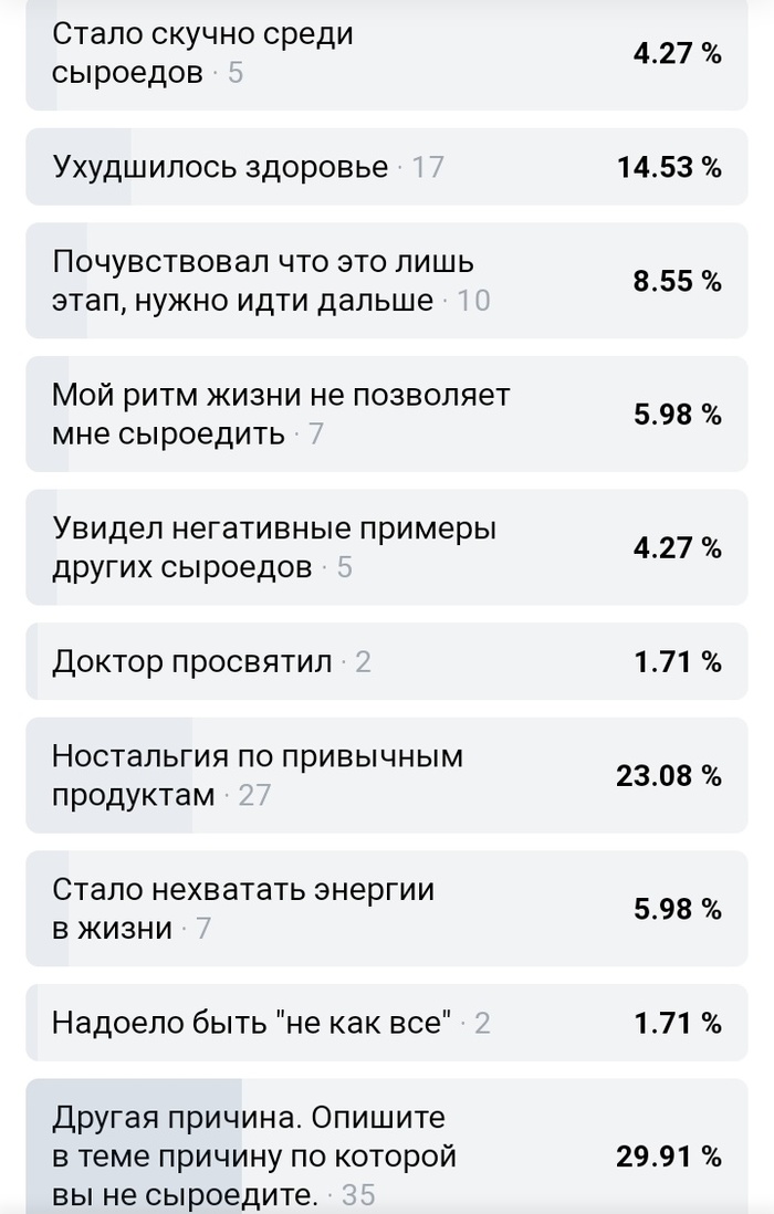 В интернете достаточно много отзывов людей у которых здоровье сильно ухудшилось на сыроедении, а некоторые и вовсе умерли. Сами активисты, авторы книг и лекций о сыроедении после многих лет сходят с этого питания. Пример Виктория Бутенко с опытом больше 10 лет, Сергей Доброздравин, Павел Себастьянович и много других людей осознав вред 100% сыроедения включили в свой рацион термически обработанные продукты. Сырая растительная пища создана природой для человека, но человек много поколений не живет по Законам Природы, если бы тело человека не изменилось за века то современные сыроеды так сильно бы не худели, а это говорит о том что микрофлора не вырабатывает нужные вещества с сырой клетчатки , часто Практика не соответствует Теории.