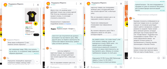 Однако маркету похоже плевать, кстати после данного диалога странным образом в чате перестали отвечать вообще (забанили потихому и молчат).