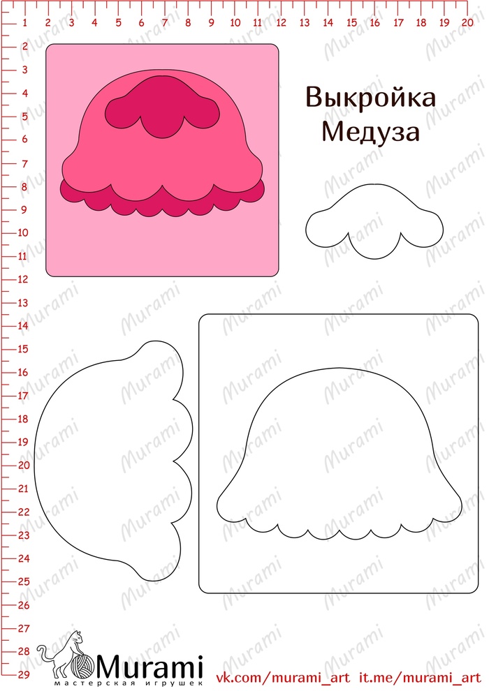 Такими игрушками я бесплатно делюсь с рукодельницами. Вот одна из них: малиновая карточка "Медуза". Я решила сделать её бонусной бесплатной карточкой в наборе игрушек с платными выкройками. Так сказать, пробный экземпляр😁