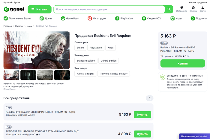Да, предзаказ Resident Evil Requiem уже открыт и доступен всем желающим. Вы можете приобрести цифровые версии игры в стандартном или делюкс-изданиях на всех основных игровых платформах прямо сейчас.