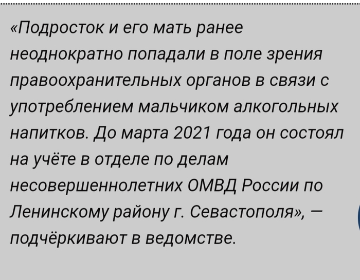 В Севастополе силовики займутся семьей подростка, жестко сбившего полицейского. В ходе прокурорской проверки будут установлены обстоятельства покупки несовершеннолетним алкоголя и транспортного средства.