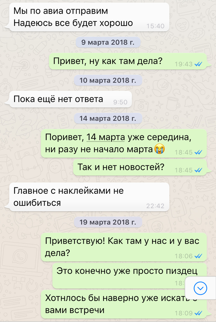 Периодически сколько-то продаётся, делали ревизию, нахлынуло, вот и написал сюда. Где-то теряешь, где-то находишь, опыт конечно сумасшедший. Нужно делать все как положено, с гарантиями, с договорами... А не на слово и как физики. Много раз я думал, что всё, капец, кинули. Прошел все стадии смирения, принятия...) Как-то так.