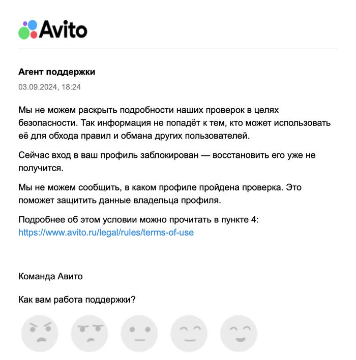 Удалил аккаунт Авито и собрался создать новый через 30 дней. Но оказалось что сделать этого нельзя и мало того, это нарушение правил. Тебя просто блокируют на площадке по паспорту, лицу, телефону, адресу прописки, дактилоскопии. И ты даже не подозреваешь что в глазах Авито ты жесткий злоумышленник. А чтобы так злостно не нарушать, иди штудируй километровую методичку в разделе "Помощь" или заканчивай курсы Авитолога или еще какого-то ололога.