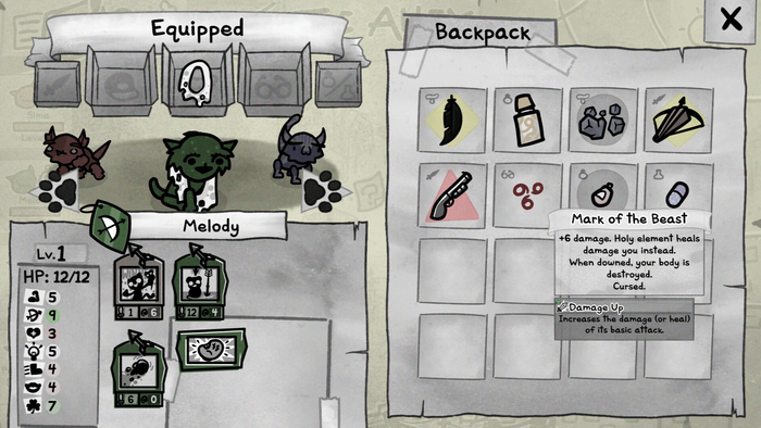 В каждом новом прохождении вам предстоит выбрать четырех пушистых сорванцов, которые снуют в вашем небольшом, но очень захламленном жилище. Каждому из этих усатых героев вы присвоите роль, вдохновленную классическими классами из настольных ролевых игр (например, воина, мага или жреца). Это определит особые умения, которые дополнят врожденные таланты ваших подопечных.
