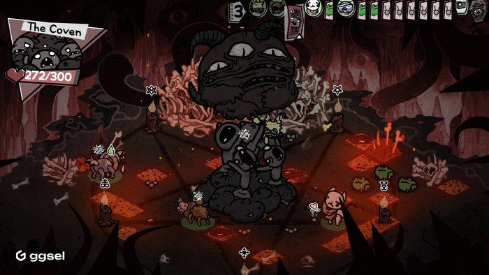 Однако именно это расстройство стало недостающим элементом, который позволил создать практически непобедимого кота-одиночку! Мы заставляли его постоянно призывать мелких мух, убивать их и пожирать — и так раз за разом. В результате он получал аж 20 ходов за раунд и бесконечное исцеление. Мы с восторгом и легким ужасом наблюдали, как он разорвал финального босса на куски — тот даже не успел ничего сделать!
