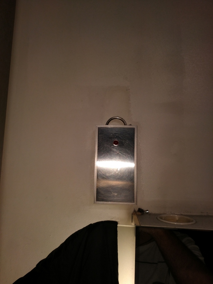 Так, что это тут у нас, фотоэлемент. Для чего, интересно. И повешена приблуда ровно над лампочкой освещения. Закрываем фотоэлемент.. приблуда перестает мигать. Опачки. Хороший сувенир, но приклеена крепко.