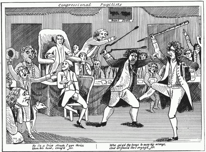 Поединок в Конгрессе США 15 февраля 1798 года. Газетная карикатура
