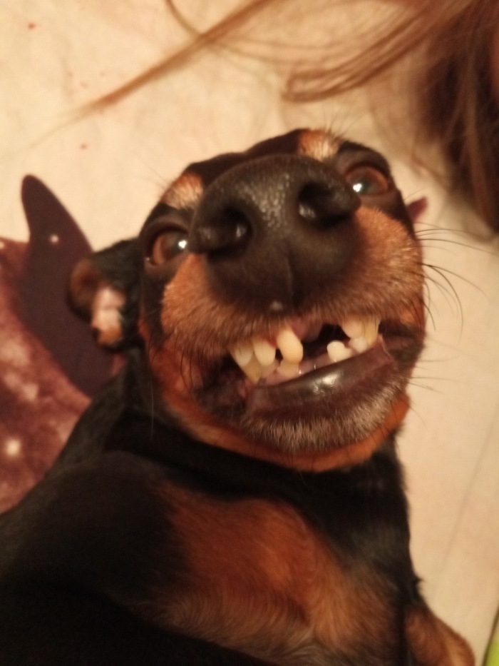 Пинчер, блядь. И смех, и грех. Муж - "выкинем!". Да хрен там, щеня-то в чем виновата, если люди мошенники и немамонты. Осталась. Назвали Ланой. Оказалась умницей, на лету схватывала. Сразу выделила дочь и защищала ее.