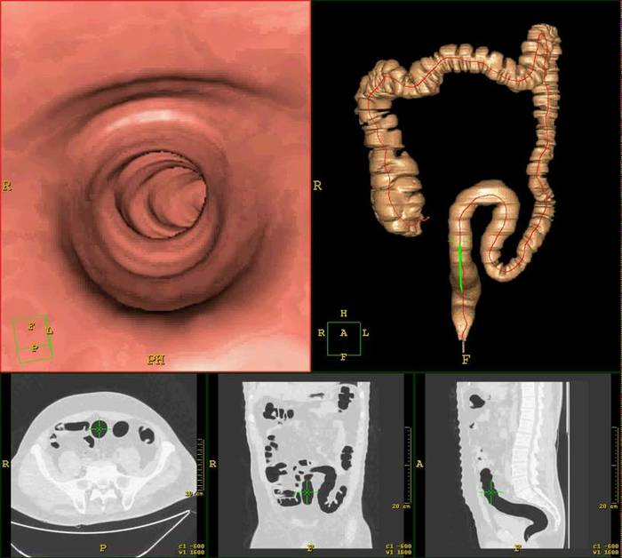 "Я такой хитрый, мне не надо делать седацию и никаких неприятных ощущений не будет". Суть - делаем колоноскопию на КТ-аппарате (КТ-колонография). Из плюсов - при умелом диагносте почти как колоноскопия (можно найти полипы от 0,5 см), не нужна седация и не нужен человек с длинным черным шлангом. Из минусов - термоядерная лучевая нагрузка, слабительные всё равно нужно пить, бывает аллергия на контраст, мелкие полипы и дисплазии не видны, биопсию не взять, дороже. Так себе вариант. Для скрининга не очень подходит.