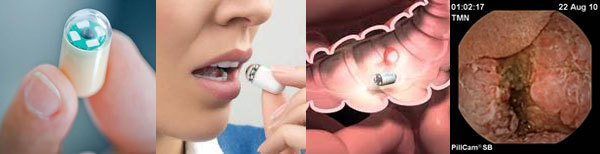 Пьем капсулу с камерой, она снимает home-видео изнутри серию снимков, пока не выскочит наружу. Или не останется в тебе, но тогда только операция спасет. Снаружи при этом носишь приемник, который записывает эти снимки. Компьютер выбрасывает большую часть снимков сам (тысячи их), оставляет человеку только самое вкусное. Осмотрит всё, включая тонкую кишку. Из минусов - дорого, слабительное всё равно надо пить (потому что из-за кала ничего не видно), мало где есть, надо ждать и носить на себе приемник.
