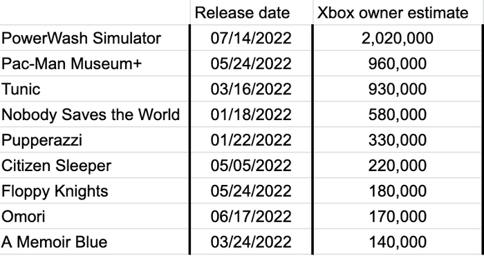 Оценка от GameDiscoverCo для ряда игр, которые в какой-то момент в 2022 году были играми