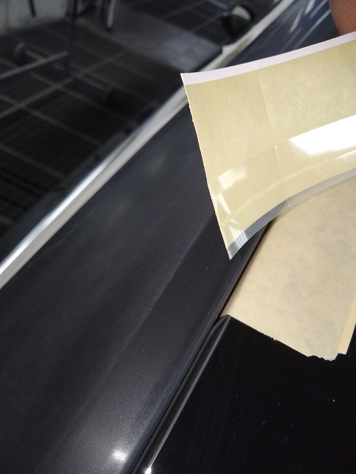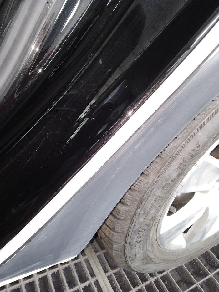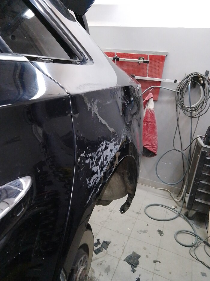 На фото зона, где мы оборвали лак. А потом "разгладили" его специальным растворителем для переходов. После этого переход полируется буквально за пару движений полировочной машинки и становится абсолютно незаметным.