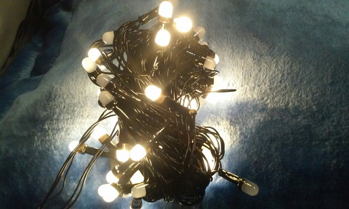 Следующей достаётся и подключается гирлянда: Похоже она отлично подходит для украшения дома и со стороны улицы!