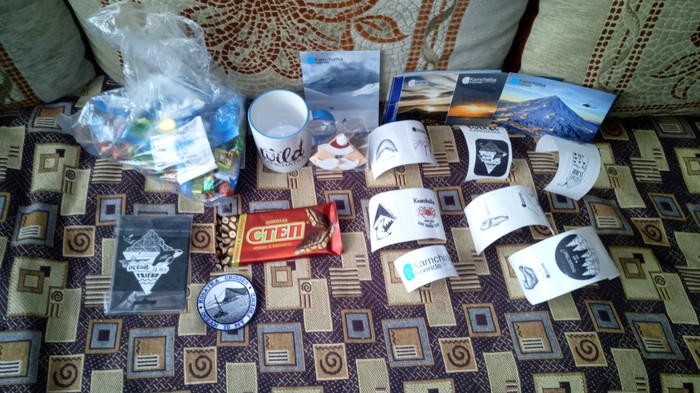 И Антоша начал копать... Нет, не так,Антоша начал рыть, аки крот в поисках подарков. Собственно внутри оказалось: Обложка на паспорт, которую мгновенно отжала мать,со словами "У тебя есть", кружка, наклейки, закладка для книги, нашивка,открытки, магнитик и само-собой конфеты.