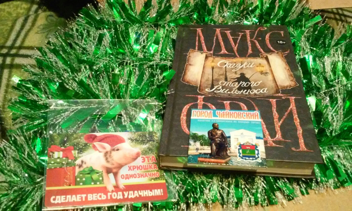 И два магнита: с памятником Чайковскому города Чайковский и забавный с символом года: