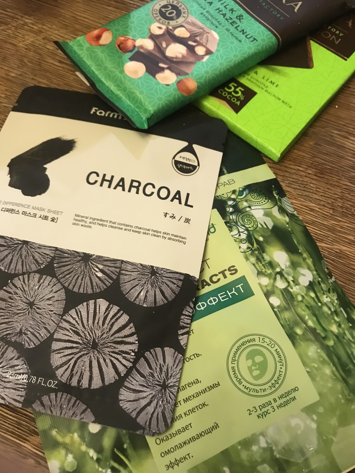 Несколько разных сладостей. Шоколад с солью и морской капустой О_о Такое вообще можно смешивать? Справа что-то китайское, похоже на фрукты в глазури. будем пробовать)